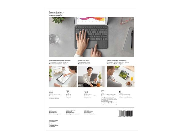 Logitech Combo Touch - Näppäimistö- ja kalvokotelo - sekä kosketuslevy - taustavalaistu - Apple Smart connector - QWERTY - espanjalainen - grafiitti malleihin Apple 10.2-inch iPad (7. sukupolvi, 8. sukupolvi, 9. sukupolvi)