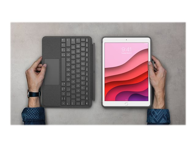 Logitech Combo Touch - Näppäimistö- ja kalvokotelo - sekä kosketuslevy - taustavalaistu - Apple Smart connector - QWERTY - espanjalainen - grafiitti malleihin Apple 10.2-inch iPad (7. sukupolvi, 8. sukupolvi, 9. sukupolvi)