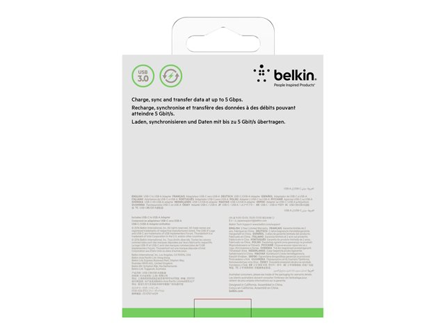 Belkin 3.0 USB-C to USB-A Adapter - USB-sovitin - 24 pin USB-C (uros) käännettävä to USB Type A (naaras) - USB 3.0 - 3 A - musta