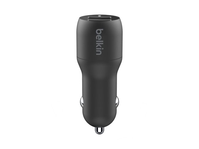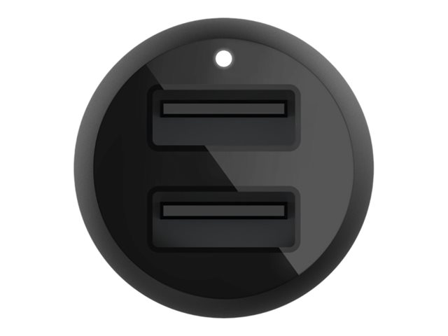 Belkin BoostCharge Dual Charger - Auton virtasovitin - 24 watti(a) - 4.8 A - 2 lähtöliittimet (USB) - johdossa: Lightning - musta
