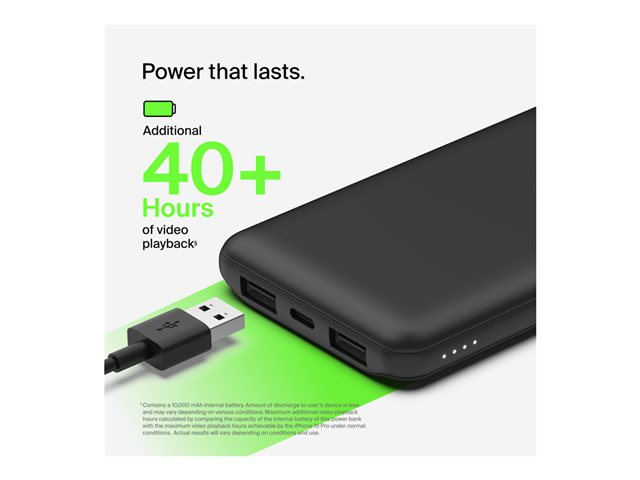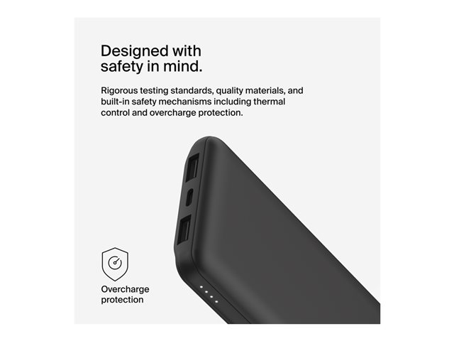 Belkin BoostCharge - Virtapankki - 10000 mAh - 15 watti(a) - 3 lähtöliittimet (24 pin USB-C, 2 x USB) - musta BPB011BTBK