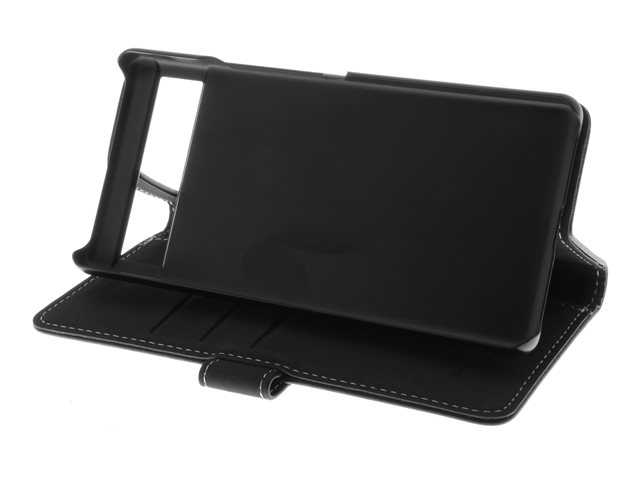 Insmat Exclusive - Läppäkansi matkapuhelimelle - aito nahka, polykarbonaatti, kartonki + paperi + alumiinifolio - musta malleihin Google Pixel 7a