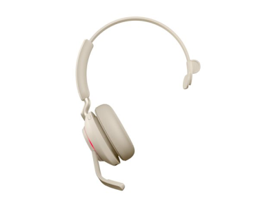 Jabra Evolve2 65 UC Mono - Kuulokkeet + mikrofoni - korvien päällä - muunneltava - Bluetooth - langaton - USB-C - melua vaimentava - beige - sekä latausalusta