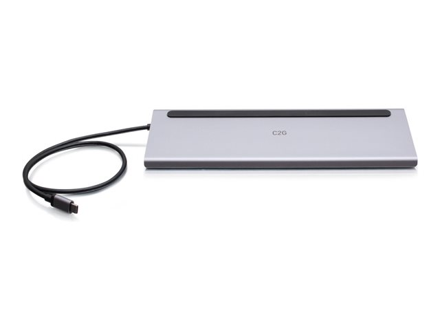 C2G USB-C 10-in-1 Triple Display Docking Station with HDMI, DisplayPort, VGA, Ethernet, USB, SD Card Reader, 3.5mm Audio and Power Delivery up to 100W - 4K 30Hz - Telakointiasema - USB-C - VGA, HDMI, DP - 1GbE