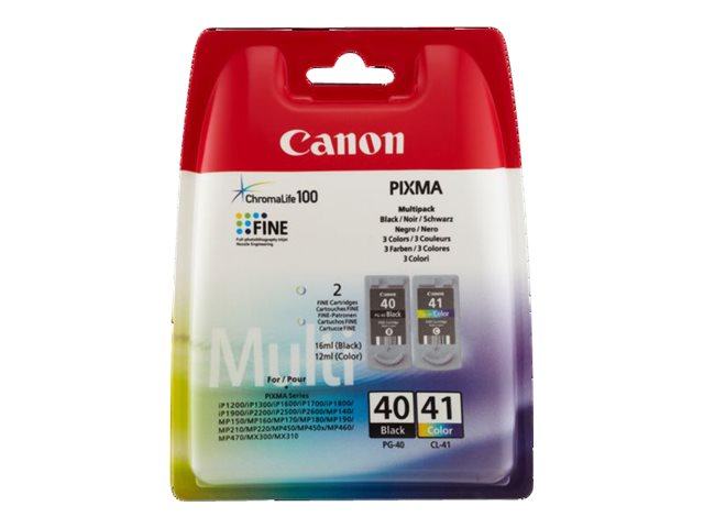 Canon PG-40 / CL-41 Multi Pack - 2 pakettia - musta, väri (sinivihreä, sinipunainen, keltainen) - alkuperäinen - mustesäiliö malleihin FAX JX210; PIXMA iP1800, iP1900, iP2600, MP140, MP190, MP210, MP220, MP470, MX300, MX310