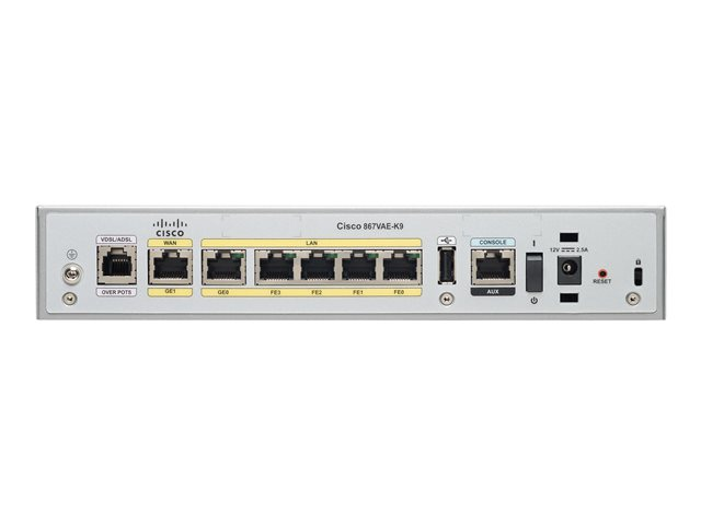 Cisco 867VAE - Langaton reititin - DSL-modeemi 5-porttinen kytkin - 1GbE - WAN-portit: 2 - Wi-Fi - 2.4 GHz C867VAE-W-E-K9